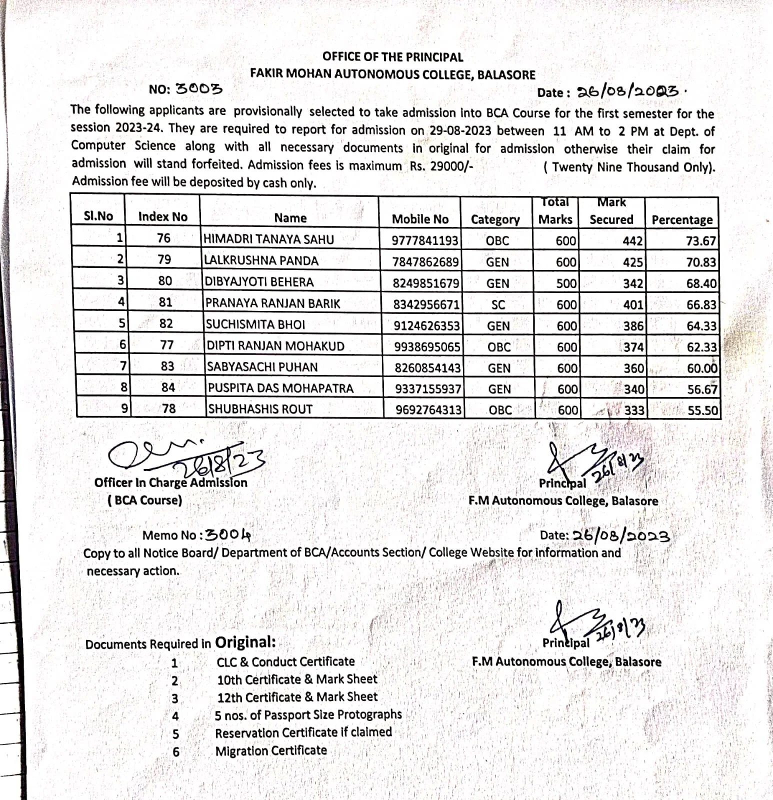 | BCA Merit List- 2023 | 26-08-23 |